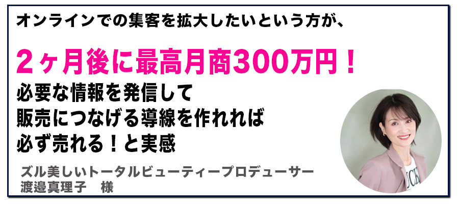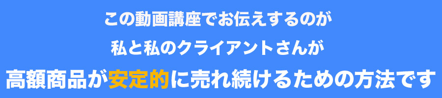 今回のオンライン講座では、私がこれまでの経験の中で築いた「売れる商品」を作って、20万、30万、50万と高額商品を毎月安定的に売り続ける方法についてお伝えしています。