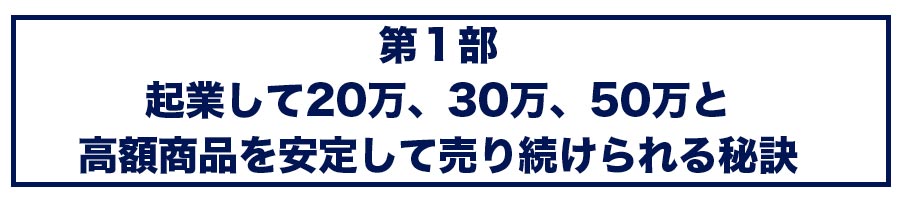 第1部では、私がクライアント様にお伝えしている起業して安定的に高額商品を売り続け、Zoomを活用した自宅完結型のビジネスを構築する方法についてお話しします。