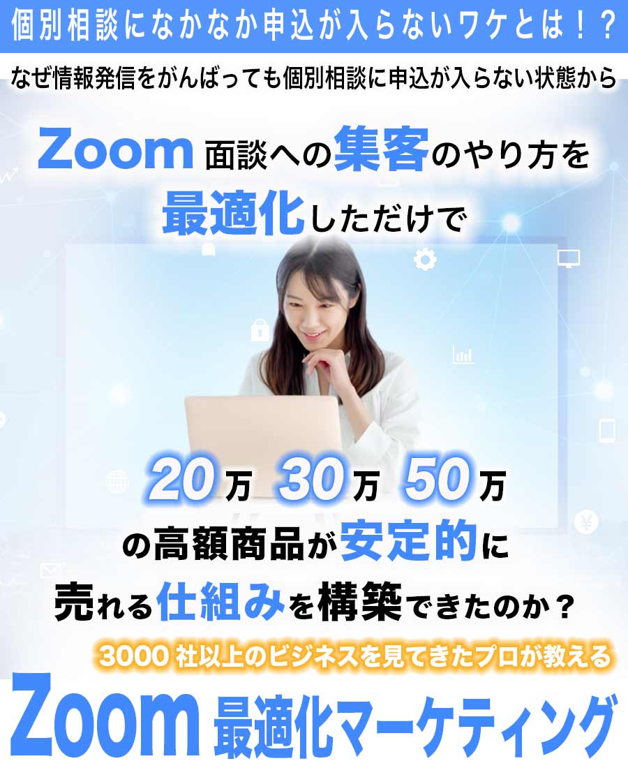 この「Zoom最適化マーケティング」の手法は、本来は高額の個別コンサルを受けていただいてる私のクライアント様にしかお伝えしていない内容です。